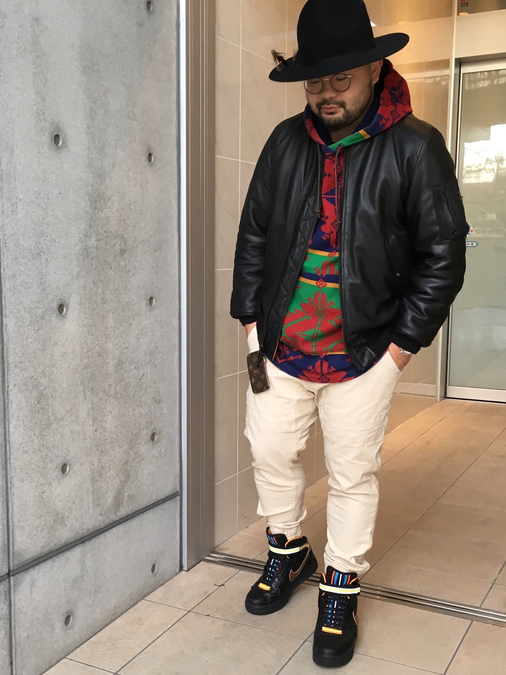 お気に入りのアイテムに囲まれてるぅー!! ハット:Art Comes First 眼鏡:Hilton Classic ジャケット:Soph User Experiment パーカー:Tackma パンツ:Tackma スニーカー:Nike x Ricardo Tisci 時計:Rolex 小銭入れ:Louis Vitton どれも、ほんとお気に入りのアイテムで、いっつもどれかは僕のコーデに入ってきてる◎ 週末しかできない、僕の好きな僕らしい服装。このユルい感じが大好きで♬