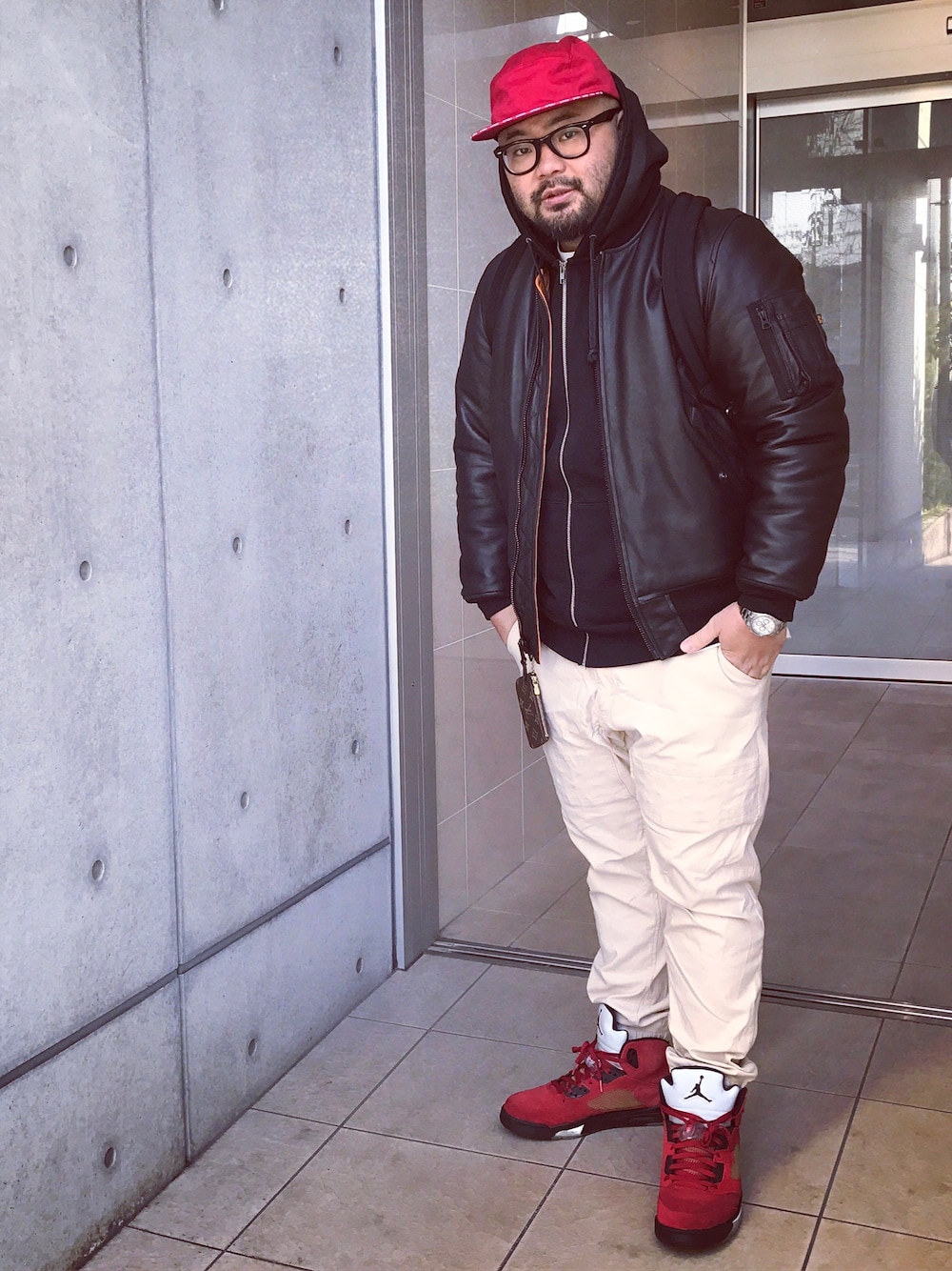 平地大樹 aka ひらっちのミリタリージャケット「ALPHA LEATHER MA-1◆」を使ったコーディネート
