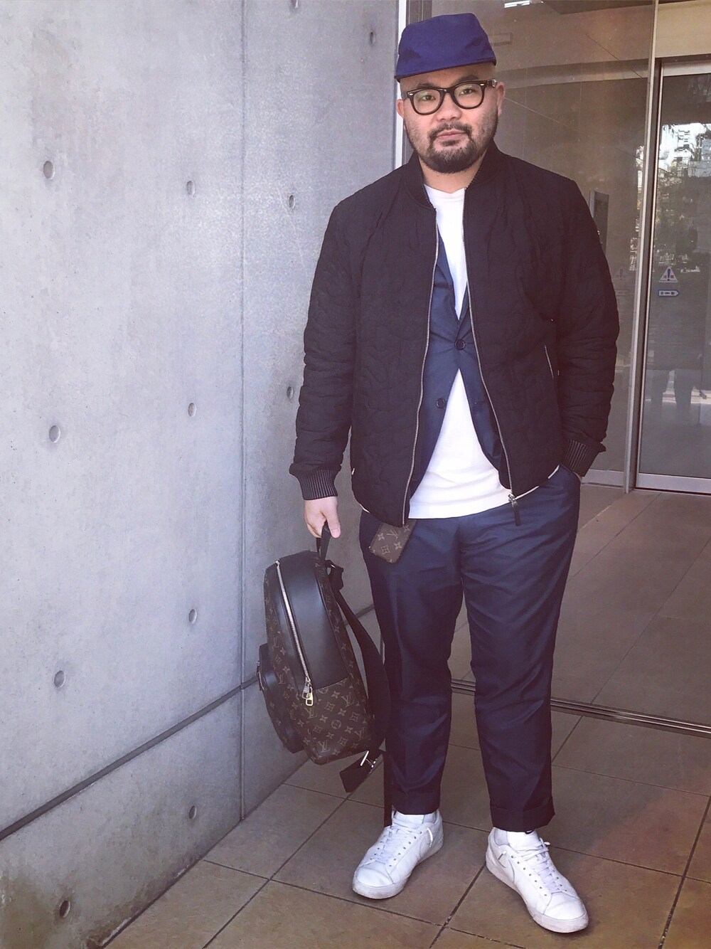 別に怒ってないよん👹全身ネイビーっす。スーツだけど、がジュアル。ストリートだけどラグジュアリー。それがストジュアリー👏🏻