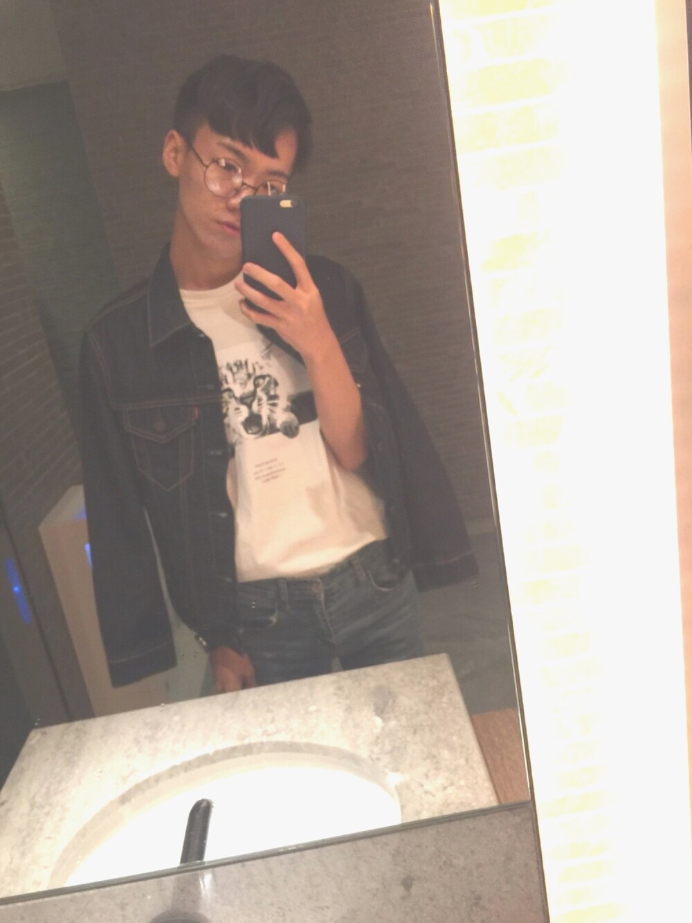 參加晚宴 沒有西裝可穿 那就來個最簡單的白色上衣搭牛仔褲 這件levis的牛仔外套 很挺 穿起來很襯身體 最後再搭上圓框眼鏡,韓風完成😜