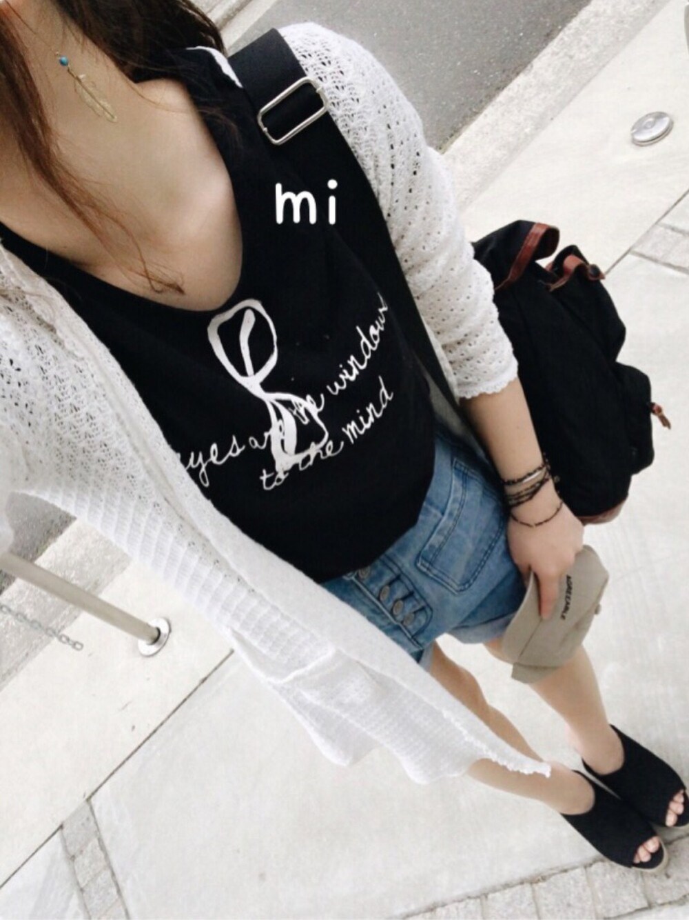 piyonomizuのTシャツ/カットソー「フェイクプリントVネックカットソー」を使ったコーディネート