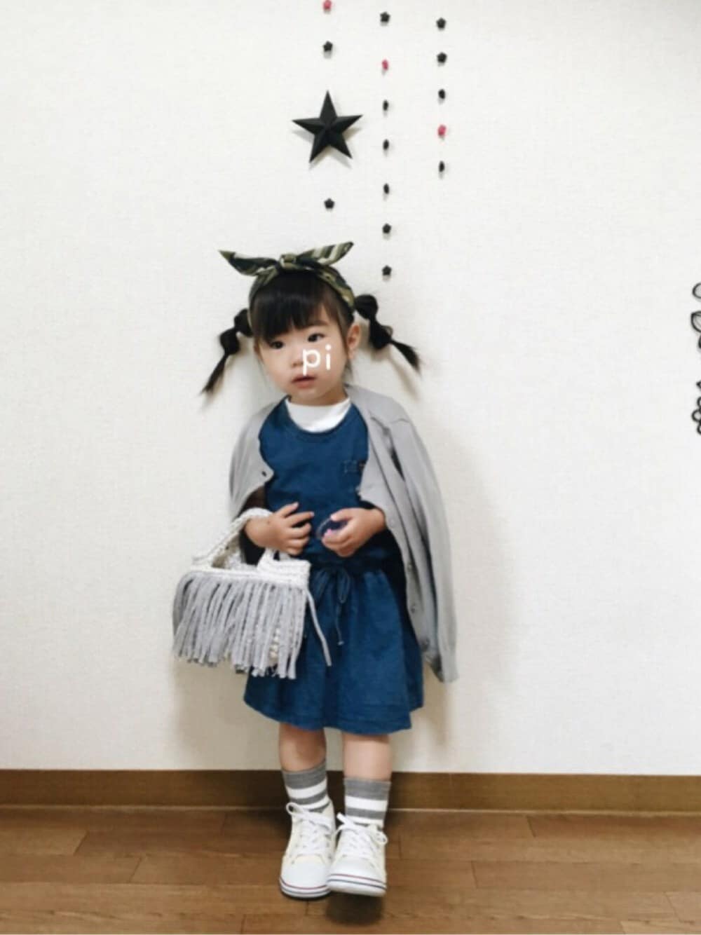 見ていただいてありがとうございます❤️ 昨日の🐥 ブルー、ホワイト、グレーにカモフラでポイント❤️ これまたbirthdayで一目惚れしたデニム風ワンピース👗 シャツはまだ未公開の(笑)キャミとセットになってたものです💕💕 KOEのアイテム長袖しかなくて… これはかなり前からロングカーデとして着てるやつ❤️ 小さい子のシンプルなニットカーディガンってなかなか見つからんから、かなり重宝してます❤️ 110やからまだまだ大きい🙈 まだまだ着れるっ👯💕💕💕 🐥が待ってるバッグは新作です✨✨ 麻の本体に、Tシャツヤーンとラメの刺繍糸でフリンジ❤️ インスタにて販売予定です☺️