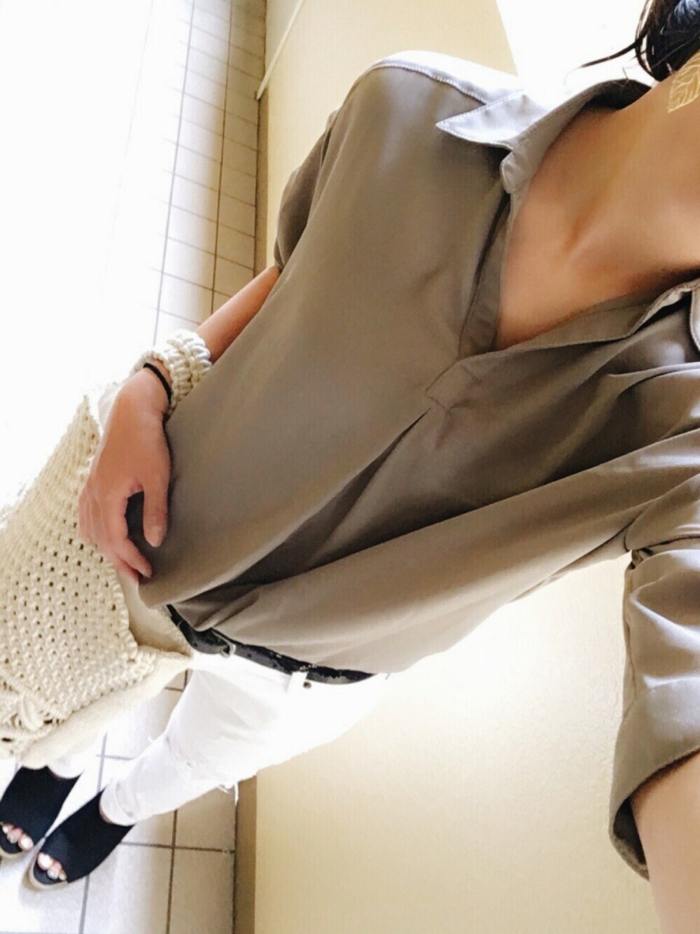 piyonomizuのシャツ/ブラウス「【7/21ヒルナンデスご紹介商品】スキッパー7分袖シャツ-2016SS-」を使ったコーディネート