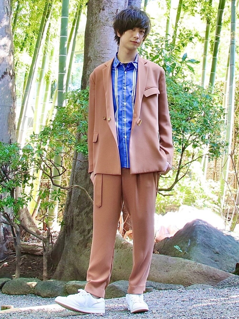 キレイめカジュアルなコーデ✨ CULLNIのセットアップに、ブルーを差し色で使ってみました😆 ストライプにもハマっているので、せっかくだしストライプシャツ👌 キレイめなセットアップをよりカジュアル方面に落とし込んでみました👍👍