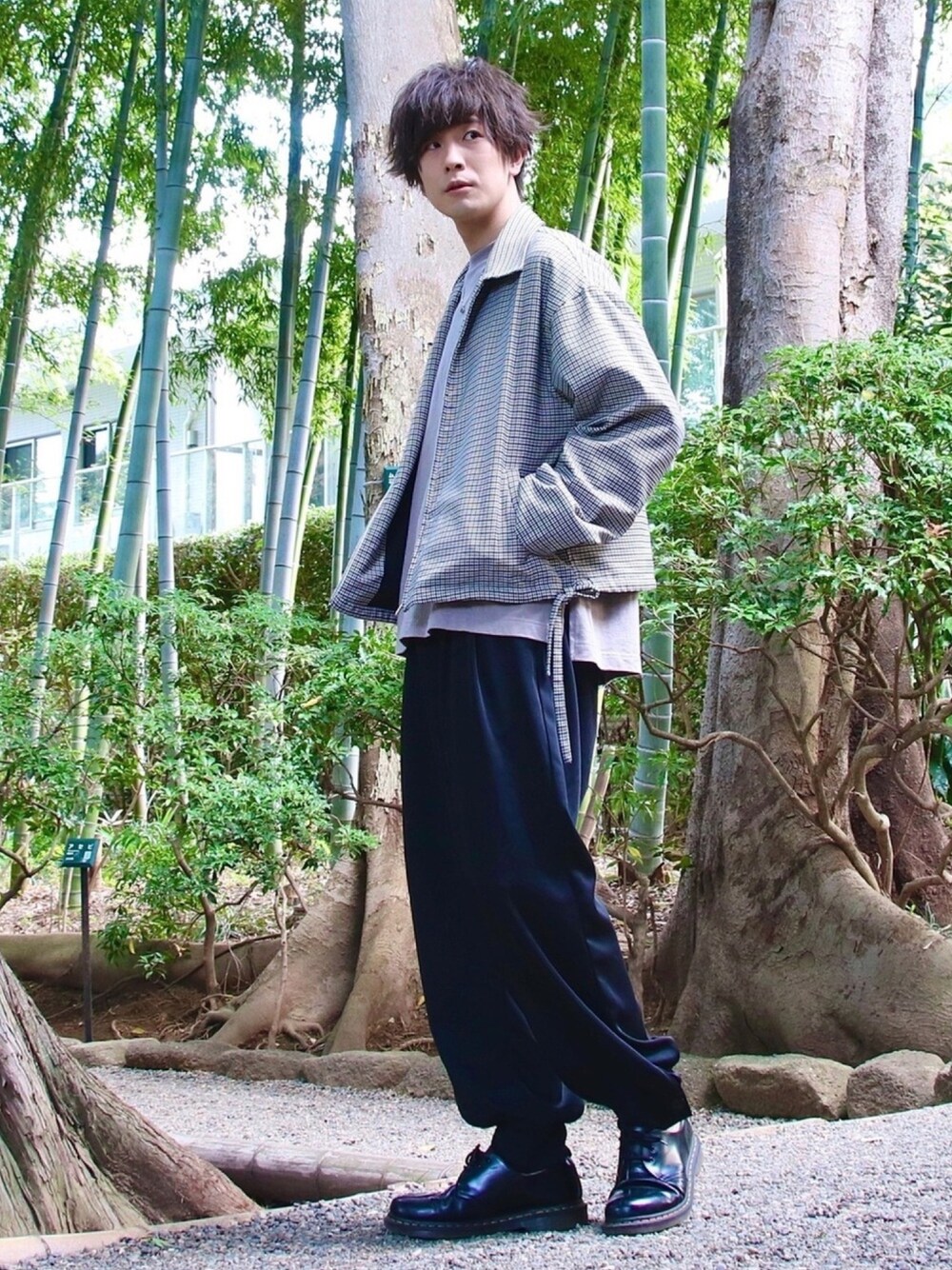 桜江しゅう のブルゾン「ビッグシルエットガンクラブチェック変形ドリズラージャケット」を使ったコーディネート