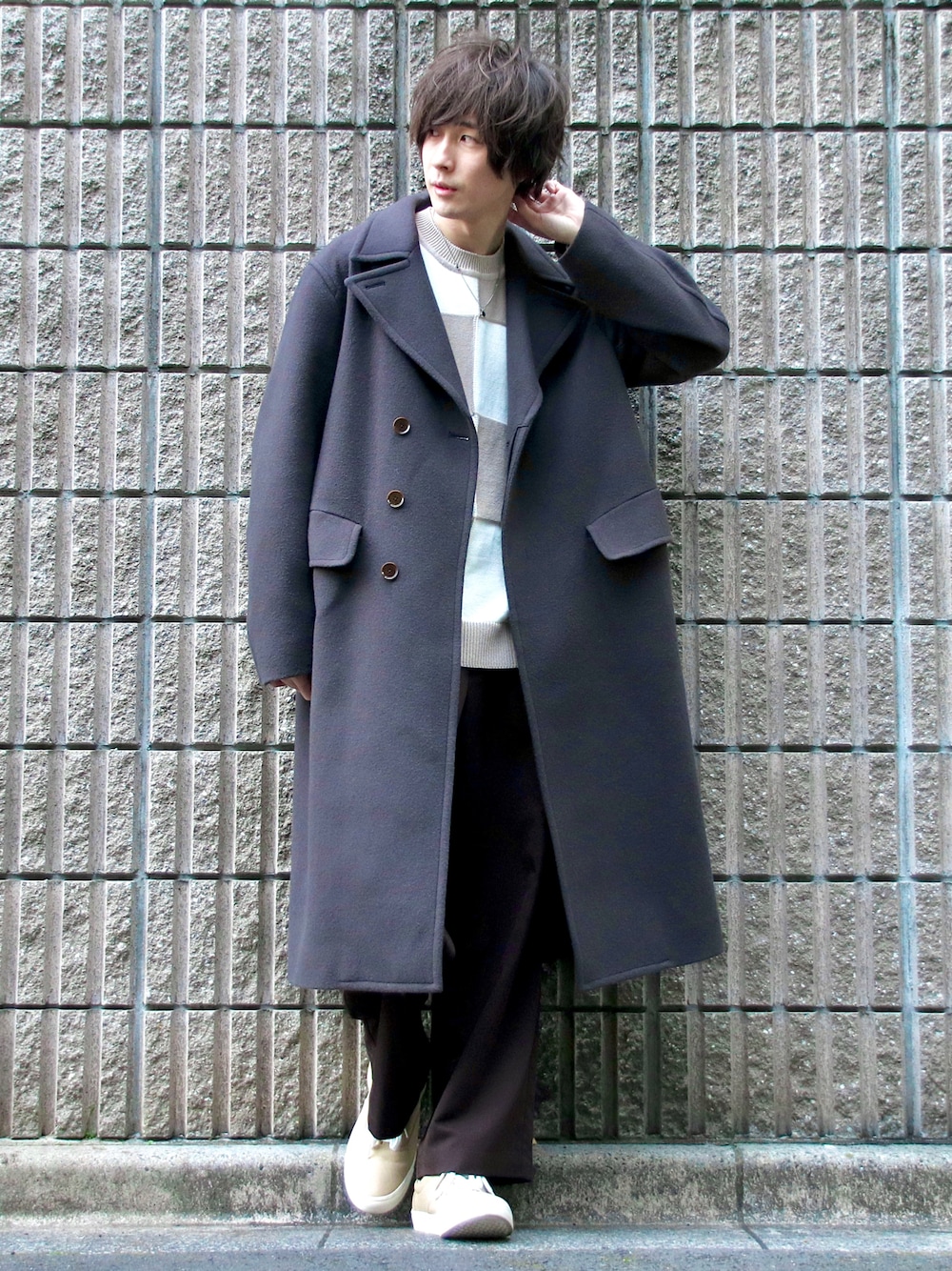 桜江しゅう のチェスターコート「SUPER140S OFFICER COAT」を使ったコーディネート