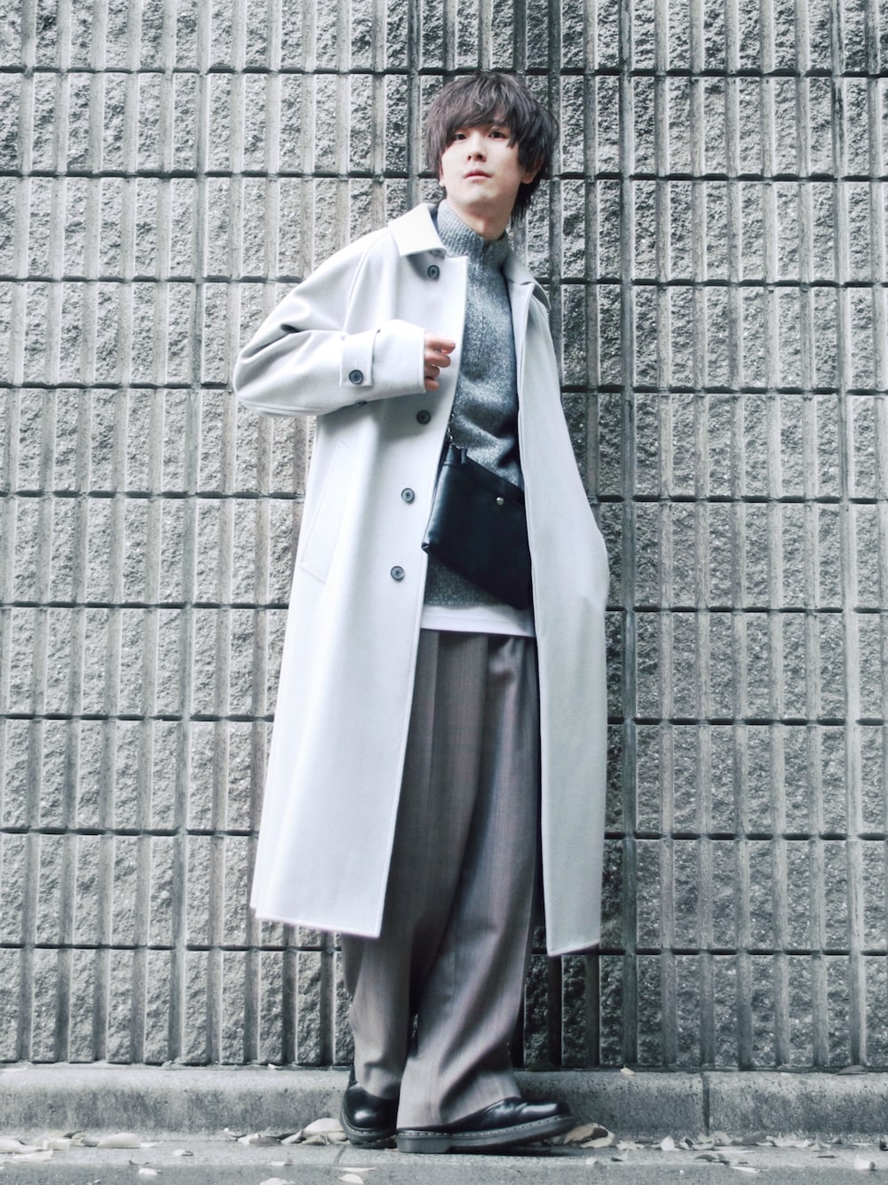 桜江しゅう のステンカラーコート「超撥水スーパー140Sステンカラーコート」を使ったコーディネート