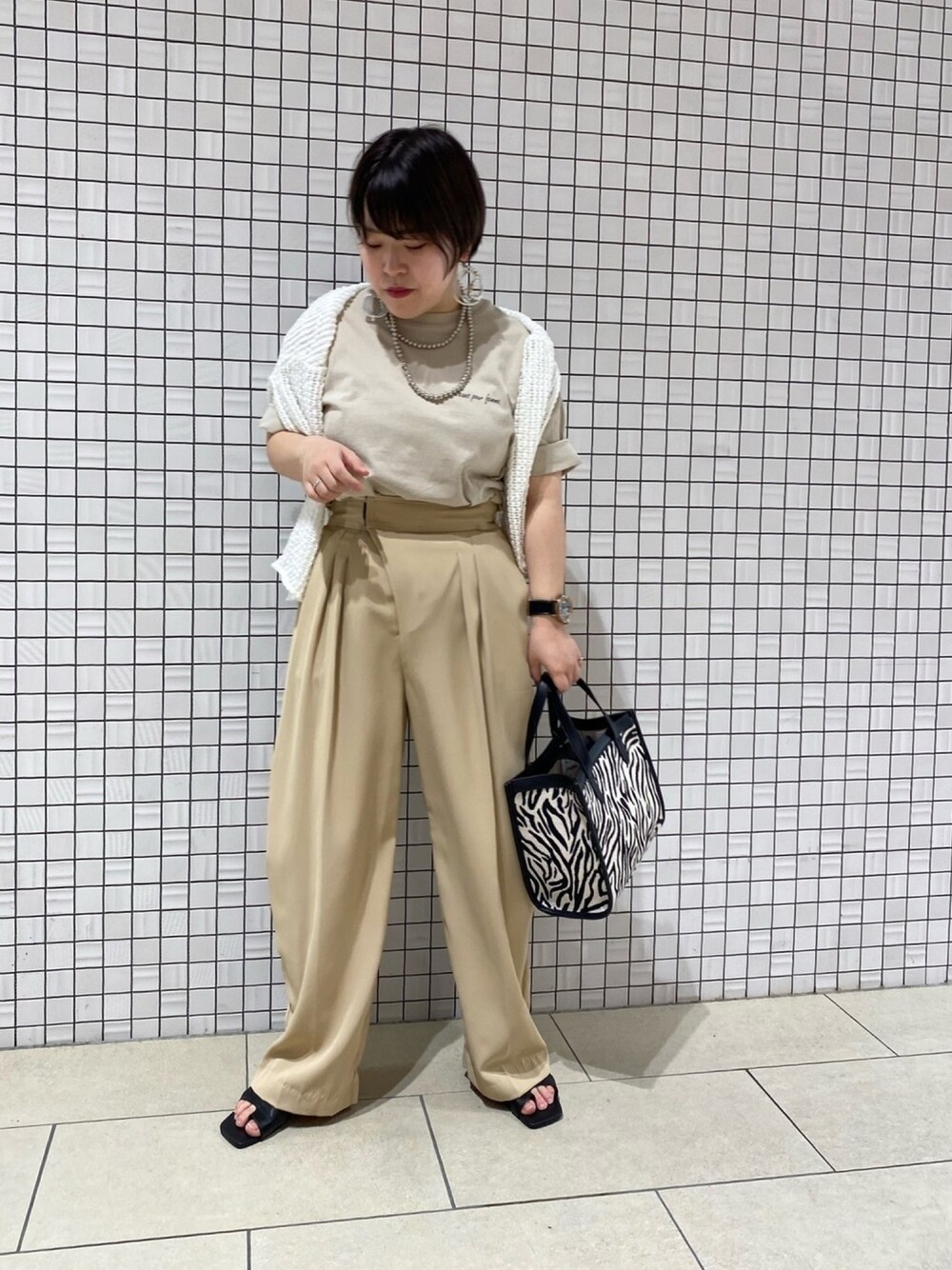 ワントーンコーデ☺︎ 小物はBLACKでメリハリをつけて。