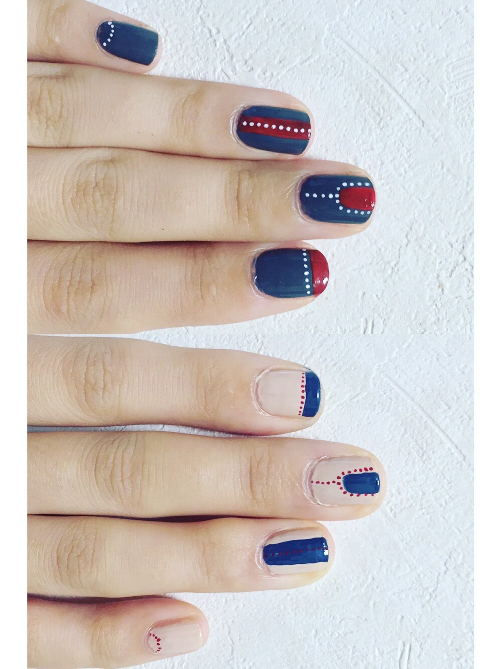 じーな復刊号に付録で付いていたray beams(?)とのコラボネイルを使ったネイル 丸い点は全てアクリルガッシュと爪楊枝を使って。