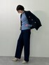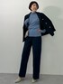 センターライン入りのデニムワイドパンツはジャケットとも好相性。 ✴︎ジャケット、デニムパンツはLサイズ着用 ✴︎ニットはトールサイズのMTT着用