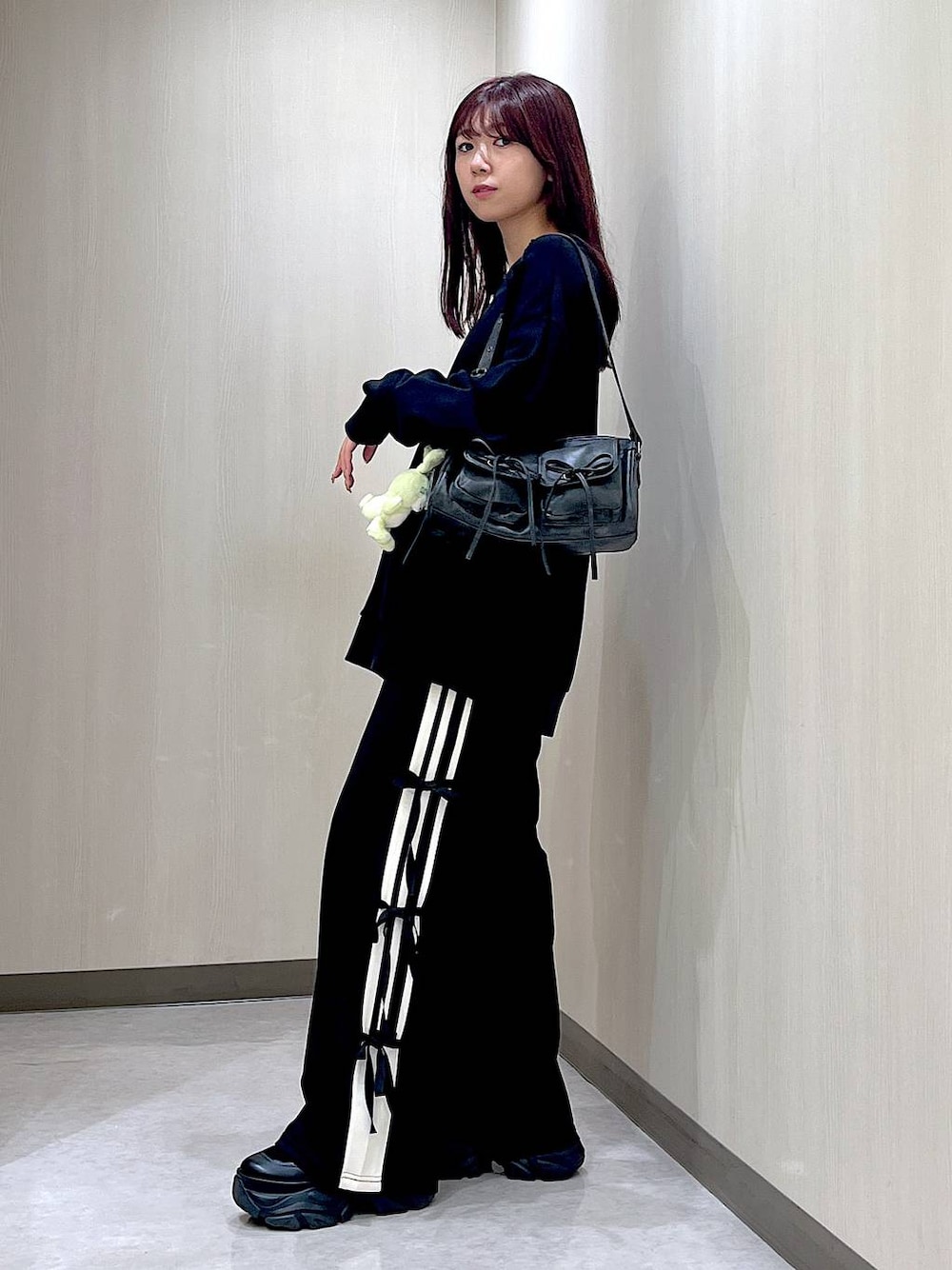 🖤オールブラックコーデ  ̄ ̄ ̄ ̄ ̄ ̄ ̄ ̄ ̄ ̄ ̄ ̄ ̄ ̄ ̄ ̄ ̄ 【ラインパンツ】 ラインが入ってる上にリボンデザインもあって 甘め好きさんにもカジュアル好きさんにも おすすめしたい!! すこし薄手で柔らかいジャージ生地なので デザインだけでなく履きやすさも◎ リボンデザインがある分 前からみてもリボン見えるので 部屋着感出すぎずカワイー💞です! パンツはレビュー動画あるよー! 動画でわかりやすいと思うからみてみて🥹🥹 パンツから探せます🔍✨ 【ソックスブーツ】 23.5/幅狭/甲低のわたしは 普段PAGEBOYの靴はMサイズを買いますが 今回はSサイズを購入しました! デザインがソックスなので柔らかくて履きやすい! 【Instagram】 @pf_103 インスタにもお洋服載せてます🍑💞