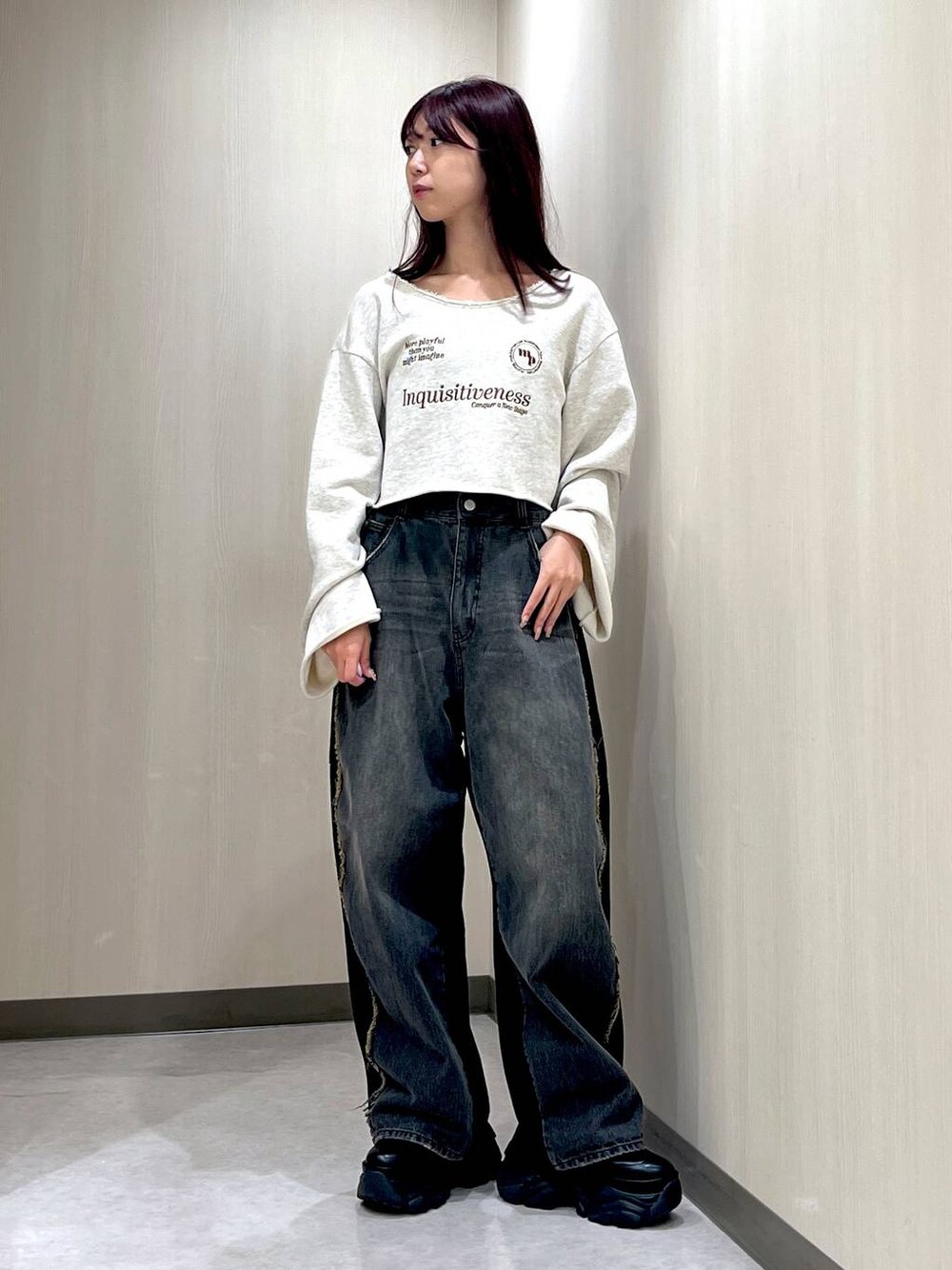 🩶デニムパンツ×スウェットパンツ  ̄ ̄ ̄ ̄ ̄ ̄ ̄ ̄ ̄ ̄ ̄ ̄ ̄ ̄ ̄ ̄ ̄ 【パンツ】 前はデニムで後ろはスウェットのパンツ! しかも横にはフリンジデザインまで、、、!! スウェットが柔らかくデニムも柔らかいので とっーても履きやすい! 変わったデニムを探してる方にも スウェットパンツを探してる方にも! 【スニーカーブーツ】 23.5/幅狭/甲低のわたしは 普段PAGEBOYの靴はMサイズを買いますが 今回はSサイズを購入しました! デザインがソックスなので柔らかくて履きやすい! 【Instagram】 @pf_103 リール動画あるよ〜!