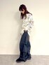 きゃぷ(PAGEBOY 池袋サンシャインシティ)のデニムパンツ「【UNISEX/3サイズ展開】タックギャザーデニム」を使ったコーディネート