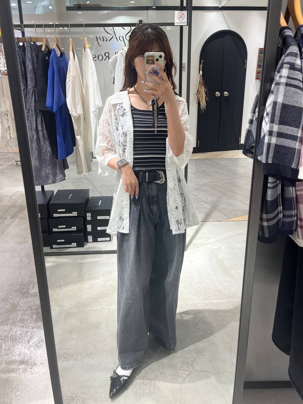 🤍期間限定価格!(動画あり)スライド🔜  ̄ ̄ ̄ ̄ ̄ ̄ ̄ ̄ ̄ ̄ ̄ ̄ ̄ ̄ ̄ ̄ ̄ 【レースシャツ】 袖がひじより下くらい 着丈はお尻隠れるくらいで、どちらも長め! 大きめなTシャツの上から羽織でも◎ お花柄が大きめなので透け感出過ぎず◎ 【タックデニム】 脚の形を拾わないタックデニム! お腹周りのタックは縫われているので お腹はスッキリ着れて太ももの気になる部分から タックが入るので体型カバー◎ 普段太めなパンツを履かないわたしでも 広がりすぎないから違和感なく履けました🥹✨