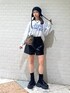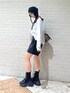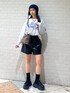 きゃぷ(PAGEBOY 池袋サンシャインシティ)のブーツ「レースアップソックスブーツ 【3サイズ展開・厚底なのに軽量】」を使ったコーディネート