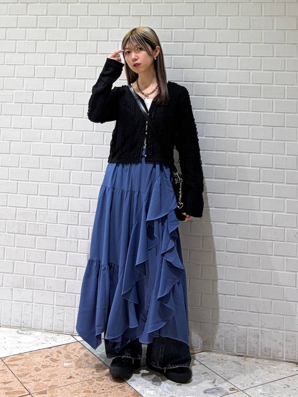 💙店頭コーデ!(動画あり)  ̄ ̄ ̄ ̄ ̄ ̄ ̄ ̄ ̄ ̄ ̄ ̄ ̄ ̄ ̄ ̄ ̄ 【カーディガン】 157cmで腰丈くらい! ベルトが隠れるかなーって感じ! 骨格ウェーブのあたしは ピタッとしすぎないなーと思ったし 中に薄手なロンTも着れたよ! レイヤードが可愛くておすすめー! 羽織りでも使えるから 夏は冷房対策でも使えそう! 【フリルスカート】 フリルだけど斜めにざっくり入っているので ボリューム抑えめ◎ 名前にもなってるように裾がジグザグしてて 長さが違うから動きが出てかわいい!! サンダルとか見せても可愛いんだけど 今回はフレアデニムを下に履いたよ! 【フレアデニム】 ちょー細見えデニム!! 膝から広がるフレアシルエットで 程よい広がりなのでレイヤードも◎ 横から見てもフレア感が出るから 前モモのハリとか気にならない!!むしろ綺麗! 157cm骨格ウェーブのわたしは XSサイズをリアルバイしたよー!! (ちょっぴり色落ちしてます) 【バッグ】 ペットボトルも折りたたみ傘も入って ポーチも2個入る大容量! ショルダーにもできるよー!