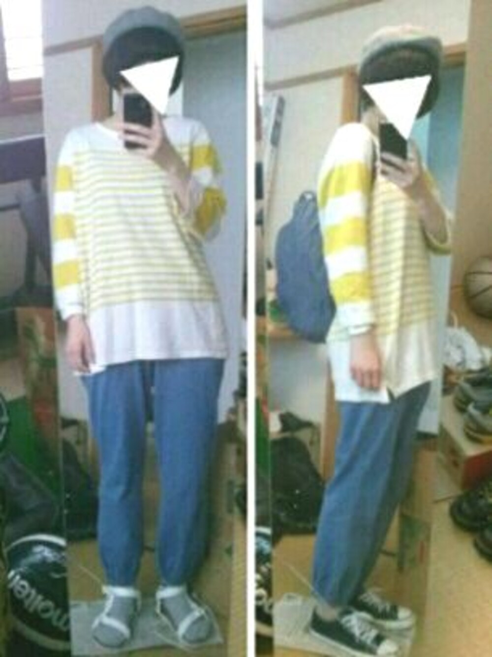 ボーダーーーーー ボーダーの太さが違うあたりがツボ 靴は、悩んだあげく スニーカーを採用。 皆さん、 どちらがお好きですか? なんか、、 私、黄色が好きかもしれない。 と思った今日この頃 この間買ったトップスも 真っ黄色 確信犯ですね はい、以上