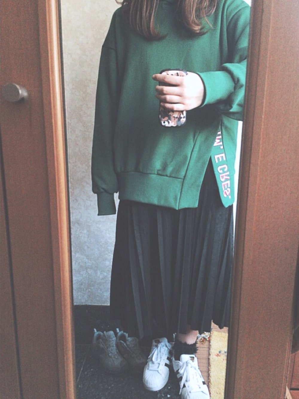 DIMの春物スウェットにロングプリーツスカートでダボっと可愛らしく😍💓