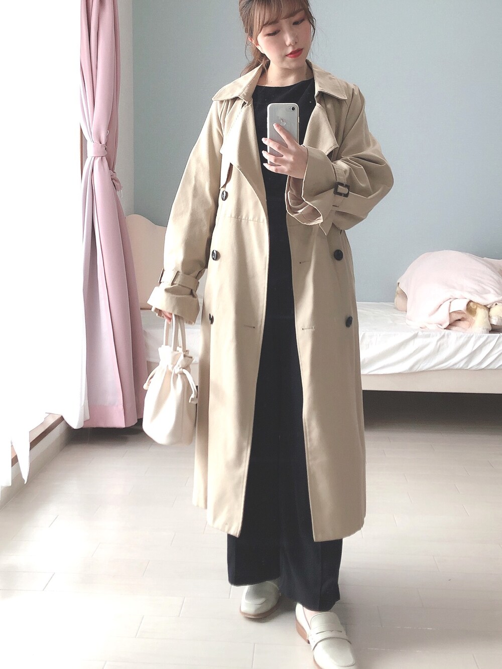 見ていただきありがとうございます! 最近涼しくなってきたのでトレンチコート着ました🧥 全体重たい感じなので髪の毛はポニーテールで🎈 Instagram▶︎misaponstagram