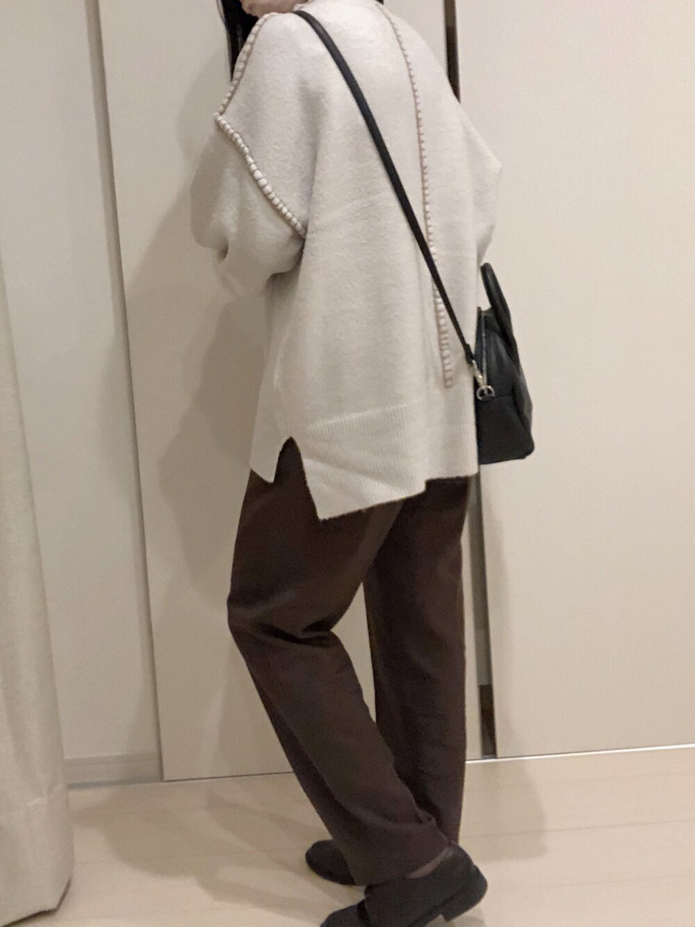 naaaのニット/セーター「ざっくり可愛い。モックネックハンドステッチ風オーバーサイズニット」を使ったコーディネート