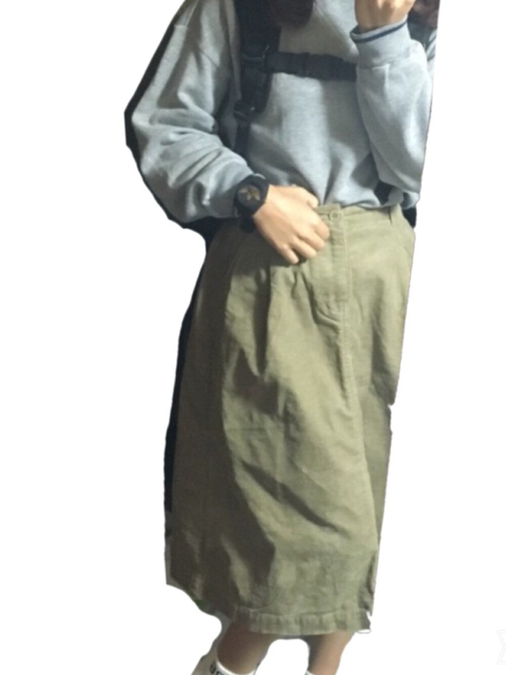 ぽんちゃんのスカート「コーデュロイロングスカート」を使ったコーディネート