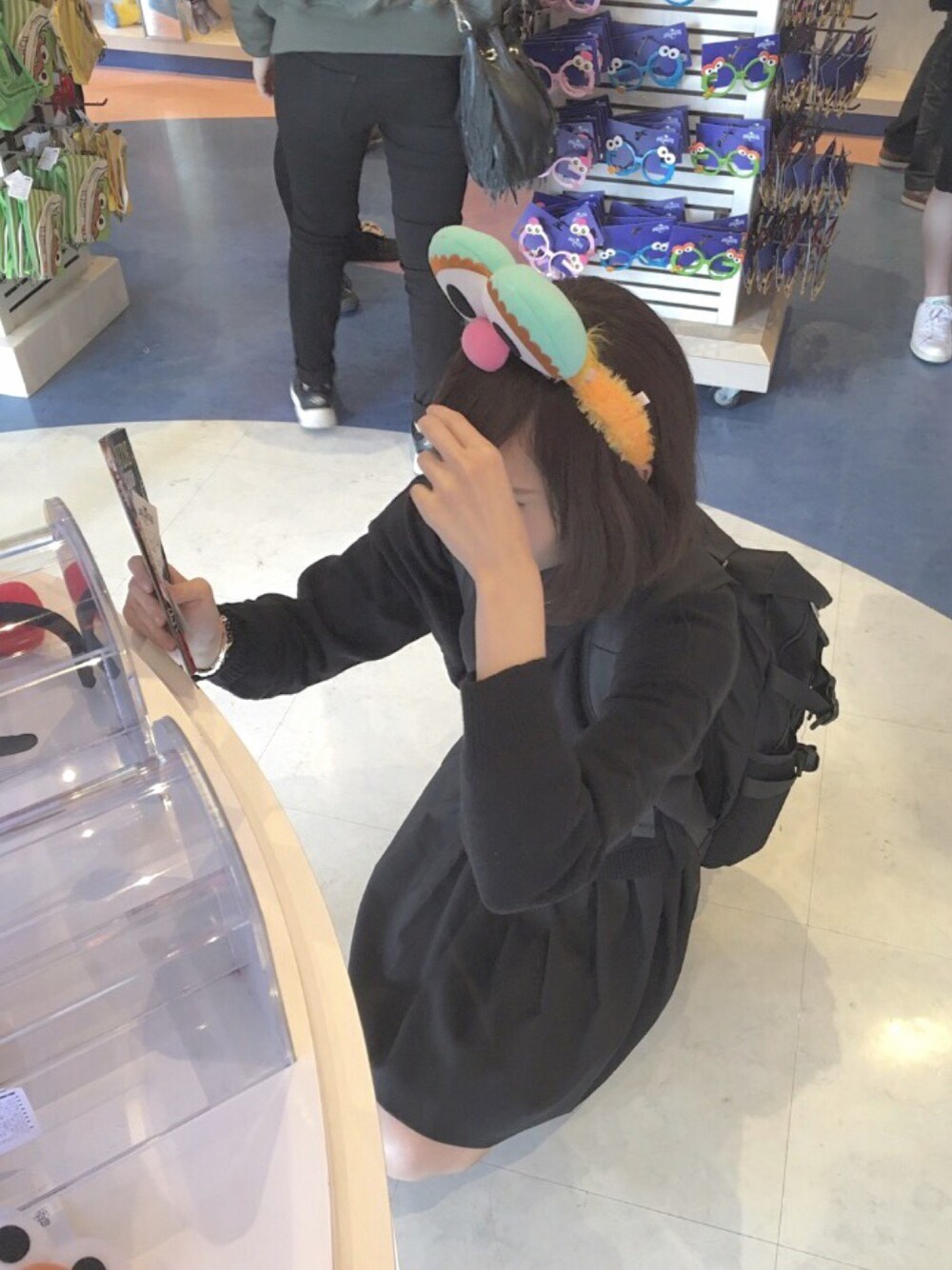 ブラック系のニット/セーター、ブラック系のスカート、イエロー系のその他を着用したレディースの春コーディネートの1枚目の写真