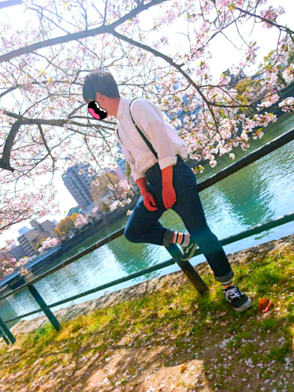お久しぶりぶりです 桜が綺麗ですね(o´罒`o) 初めてサスペンダーを使ったコーデをしました お気に入りです👍 腕の日焼けは気にせずにww では次の投稿でお会いしましょう!