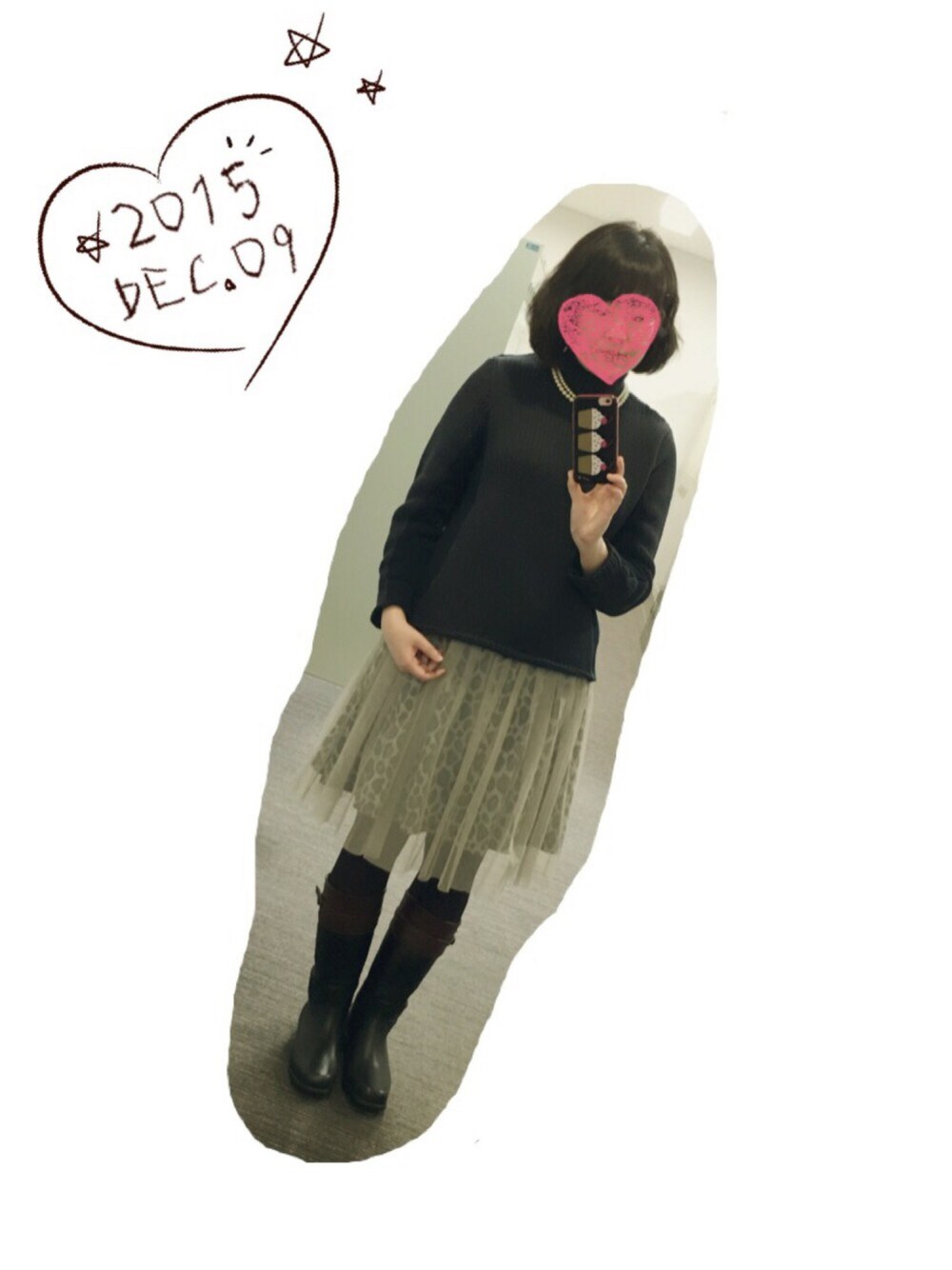 今日は少し女性らしく♡ レオパード柄にチュールがかかったスカートは、お気に入りです。 ニットはブラックと表記されていますが、ネイビーです♪