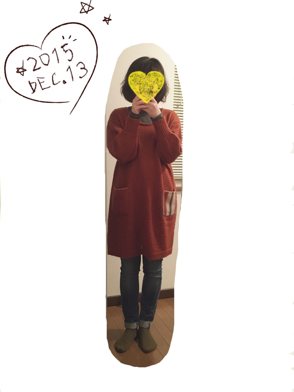 今日は家でのんびり。 ニットワンピにジーンズの楽チンコーデ^ ^