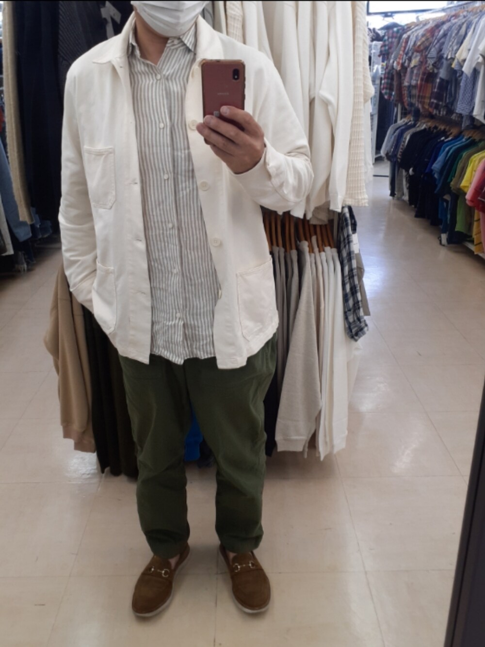 冷房対策のアウターは、涼しげな色を選択。そろそろ梅雨入りかな?