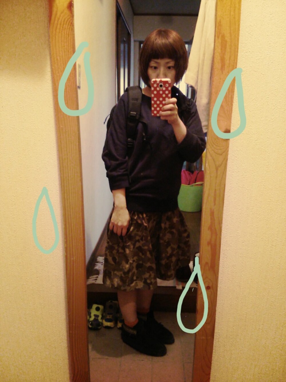ドルマンスウェット●ジャーナル 迷彩ネルスカート●handmade あめ、あめ、あめ。 今日は娘たちの発表会。 最初から最後までいたから疲れたけど、 成長をしみじみ感じた時間でした。 handmadeの迷彩スカート、 形がいまいち…。