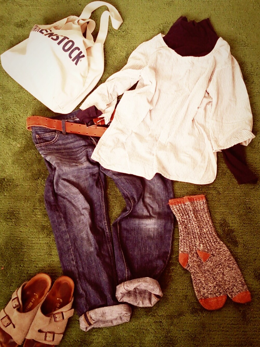 ビルケン祭り(笑) ブラウス●handmade タートル●childwoman デニム●無印 ソックス●BIRKENSTOCK サンダル●BIRKENSTOCK トート●BIRKENSTOCK