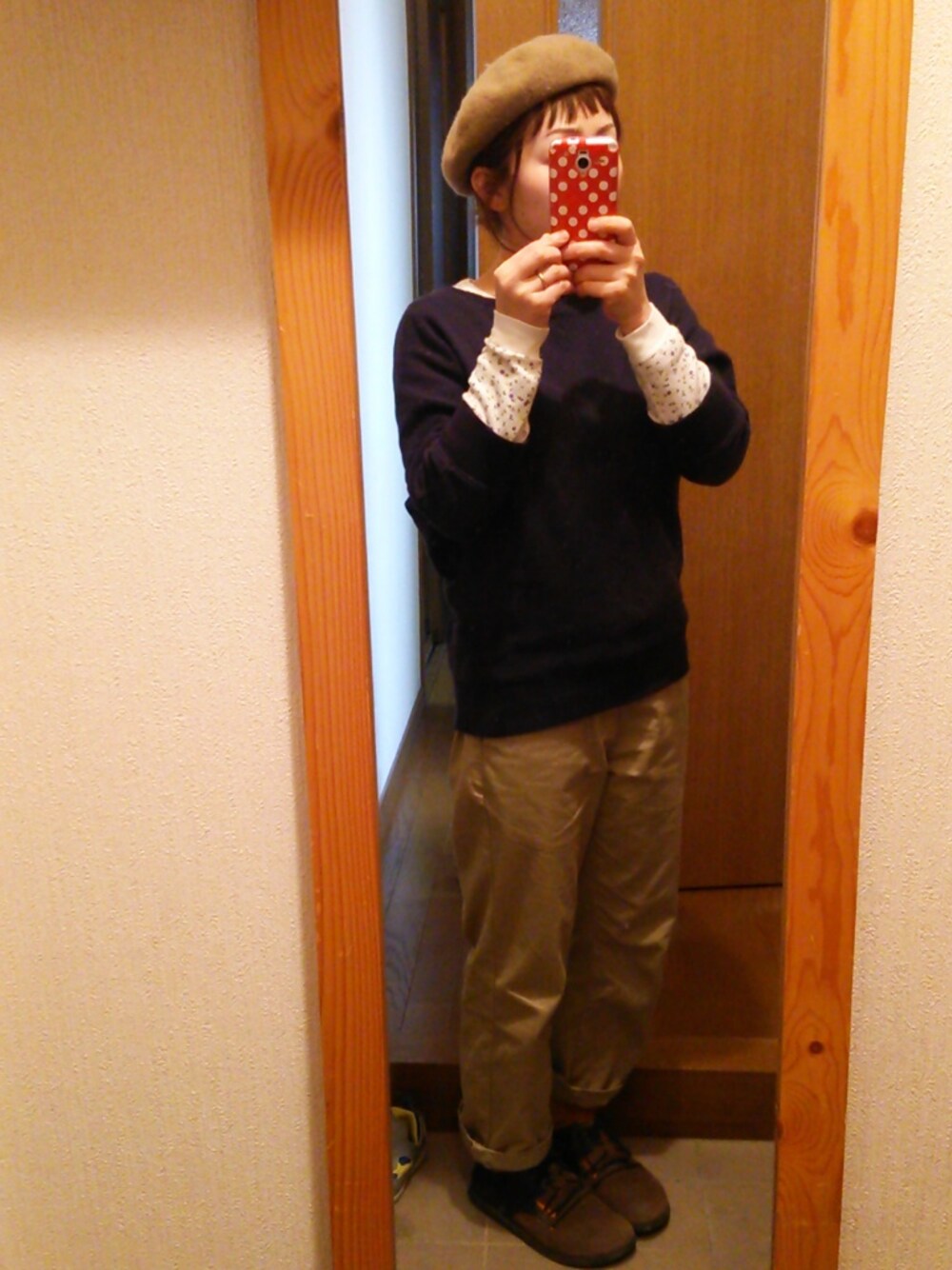 ドルマンスウェット●JOURNAL STANDARD 花柄サーマル●BEAMSBOY チノパン●無印 シューズ●BIRKENSTOCK ベレー●studioClip 今日は朝一で 妖怪ウオッチの映画を観に行きました。