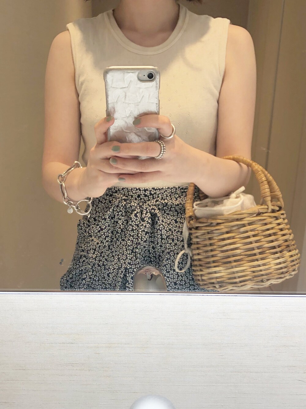 髪の毛が短くなったこともあって可愛らしい服も着れるようになりました🌿 大ぶりのアクセサリーにも挑戦しやすくなりました☺️👒