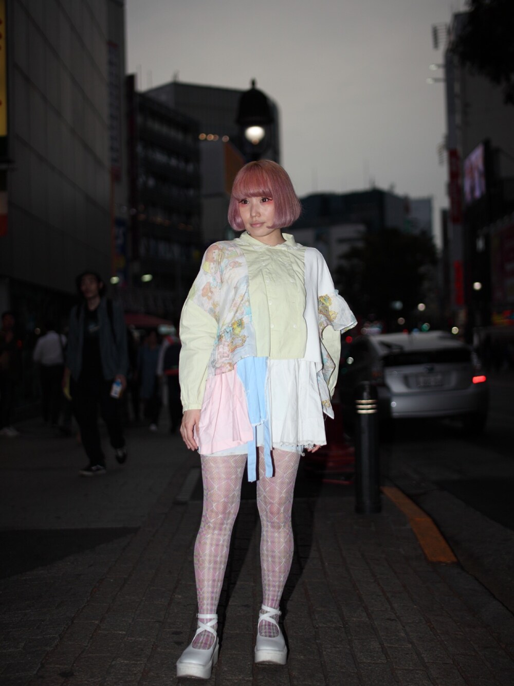 ぽこあぽこスタッフスナップ タイツ:Jonathan Aston 網タイツ:Music legs プリントメッシュタイツと白い大メッシュタイツの重ね履きはオススメコーデ。やってみてね❤️