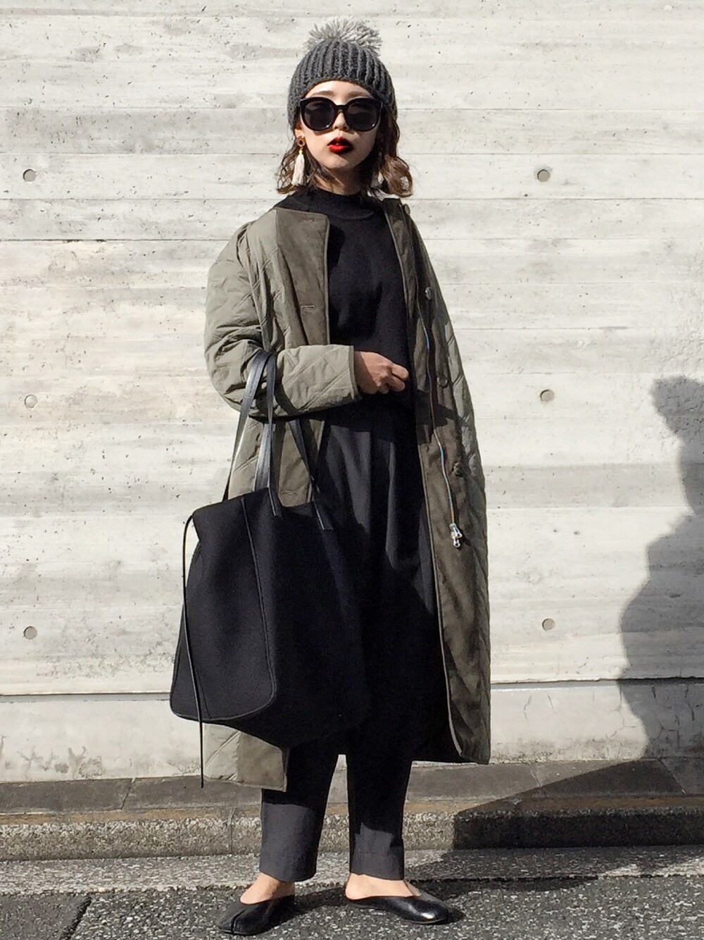 . H/standardで一目惚れしたコートと 色味の可愛いパンツ!! パンツはスミクロぽいカラーで 黒トップス合わせると簡単に濃淡つけれる🙌🏻 フロントのデザインも可愛いの♡ . そしてバイカラーなキルティングコート! 軽くてあったかなのはもちろん 大人っぽくもカジュアルにも使えるデザイン✨ この丈感 、質感たまんない🗣💕 大事に 沢山着よう…♡