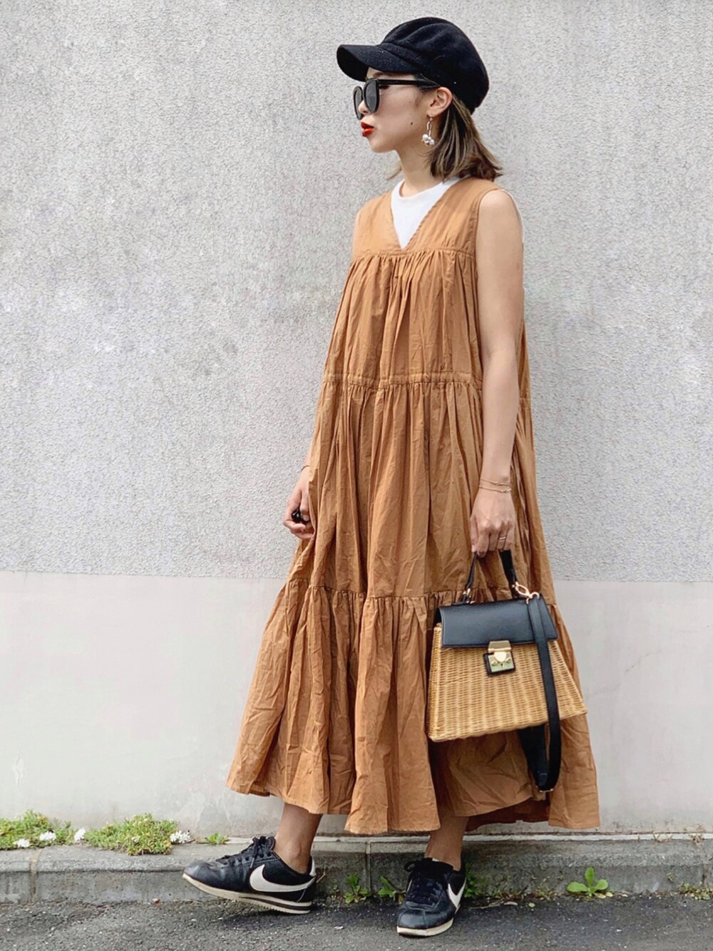 𝓅𝑜𝒸𝑜のワンピース「ティアードノースリーブリラックスワンピース」を使ったコーディネート
