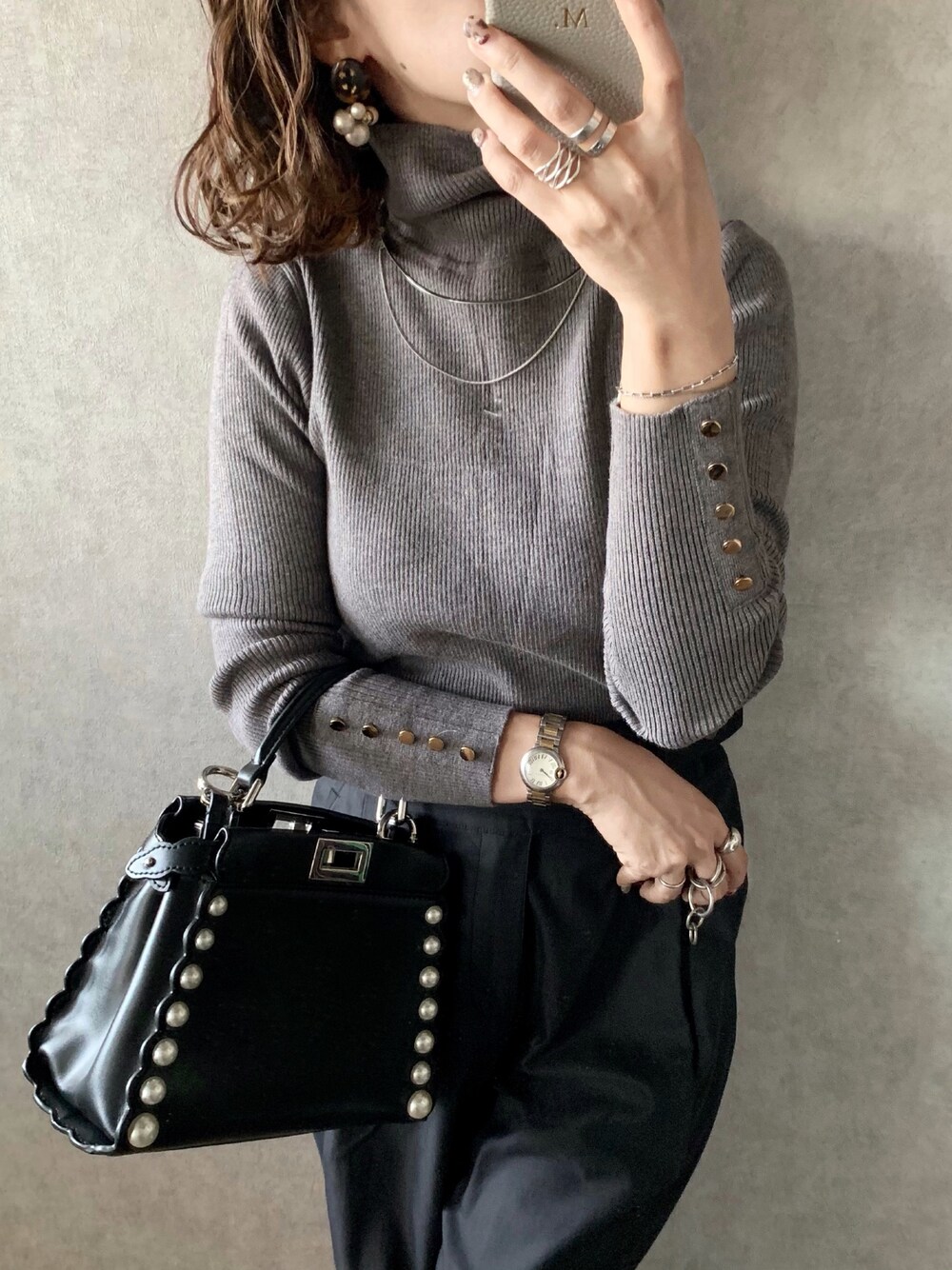 𝓅𝑜𝒸𝑜のニット/セーター「袖ボタンリブタートルニット」を使ったコーディネート