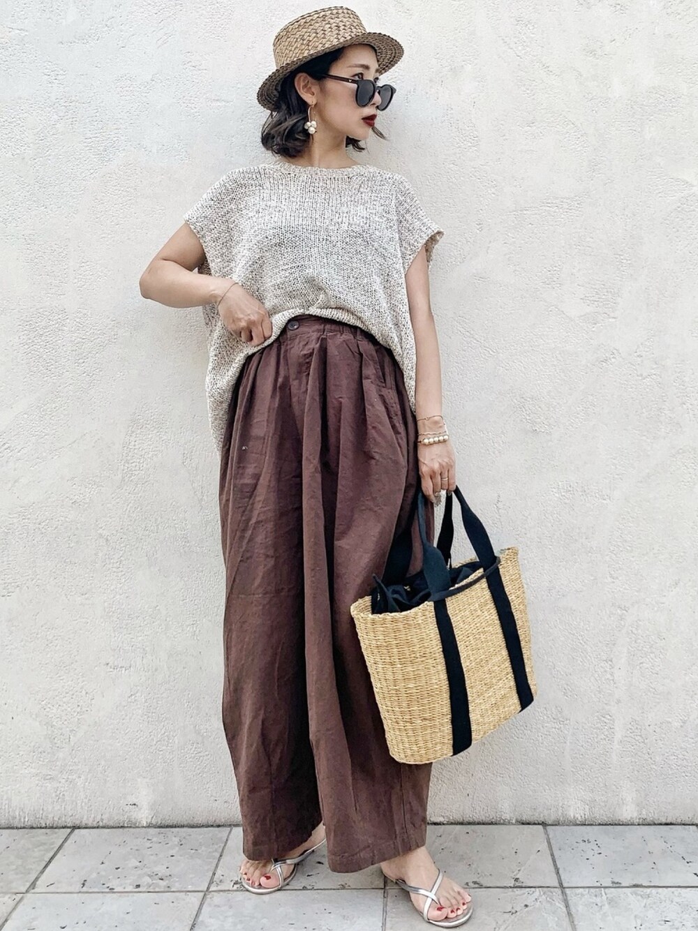 𝓅𝑜𝒸𝑜のかごバッグ「MUUN(ムーニュ):カゴバッグ ◇」を使ったコーディネート