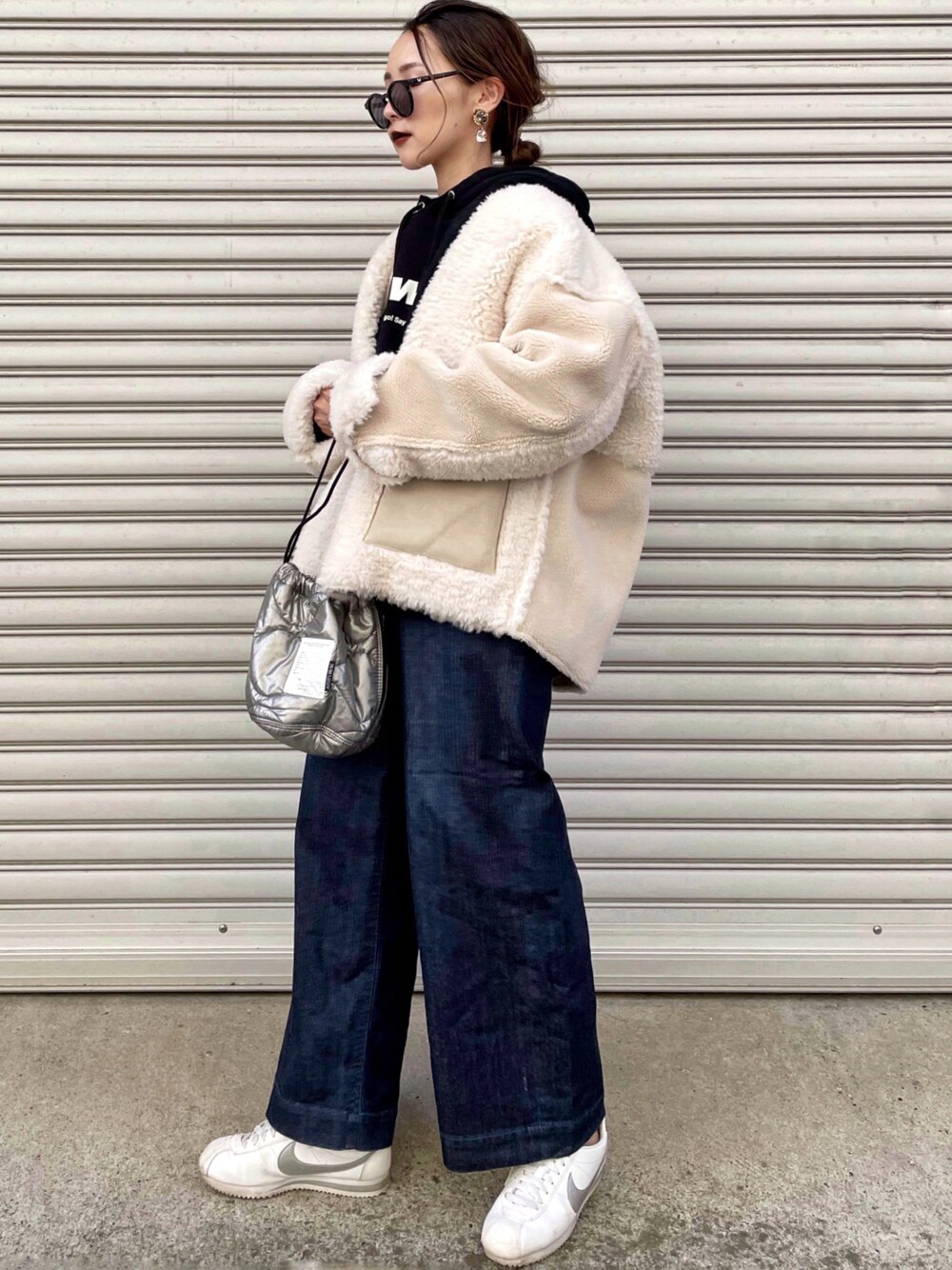 . ご近所カジュアル♡ New inしたのは @kbf.official_ の フェイクムートンパッチワークジャケット✨ リバーシブルで使えるので色んな着こなしできるやつ💕 アウターってほんと嵩張るから リバーシブルほんとありがたい❣️🥲 しかもムートンとボア!どっちも使える🙆♀️ outer #KBF #ケービーエフ ZOZOTOWN time sale now!