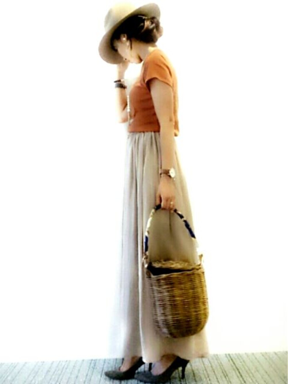 暑すぎて初代リブTを。 テラコッタは完全に秋色なので、この時期重宝します👌👍♬*° 半袖でも、色や小物で秋っぽさを出せば涼しく快適💃💃💃