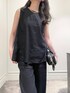 セットアップでの着用です✨✨ ◎リネンストレッチブラウス フリーサイズ/ぴったり 素材は、 透けがなく1枚でサラッと着れます✨ ストレッチが効いていてカットソー感覚で 着れちゃうブラウスです! 麻がしっかり入ってますが レーヨンのツヤもあるので ちくちくせず着心地◎ 少し裾に向かってドレープが入るデザインです。 カジュアルにデニムで合わせても◎ 綺麗目タイトスカートでお仕事にも着れますよ✨ ◎リネンストレッチパンツ 36サイズ/ぴったり ブラックのパンツはたくさん見ますが チャコールは深みのあるチャコールは なかなか珍しいですよね✨✨ 夏場でも重たく見えない落ち着いたカラーです! 丈は、 162cmの私で ぺたんこ履いても擦らない丈です! 裾サイドにスリットが 入っているので抜け感があります✨✨ 小柄さんも履きやすい!✨ 足首がしっかり見えるスリットです!