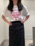 ⭐各アイテムのおすすめポイント  ̄ ̄ ̄ ̄ ̄ ̄ ̄ ̄ ̄ ̄ ̄ ̄ ̄ ̄ ̄ ̄ ̄ 【トップス】 華奢な筆記のロゴTは カジュアルにも綺麗目にも使えます✨✨ サイズは、 大体メンズのSぐらいです! 女性が着るとトレンドのオーバーサイズが 綺麗に出るサイズです✨ しっとりとした柔らかい綿なので 肩周りの馴染みがすごくいいです! どんな方でも挑戦しやすいですよ◎ 【ボトムス】 素材は、 透けがなく1枚でサラッと着れます✨ ストレッチが効いていて履き心地◎ タイトスカートでも足捌き楽ちんです! 麻がしっかり入ってますが レーヨンのツヤもあるので ちくちくせず着心地◎ 体のラインを拾わないタイトです。 なのでコンサバになりすぎず 今っぽいきれいめスタイルを叶えてくれます✨ ウエストは ちゃんとゴムが入っているので安心です✨ 内側にゴムが入っているので フロント部分はスッキリ見えるのも◎