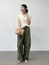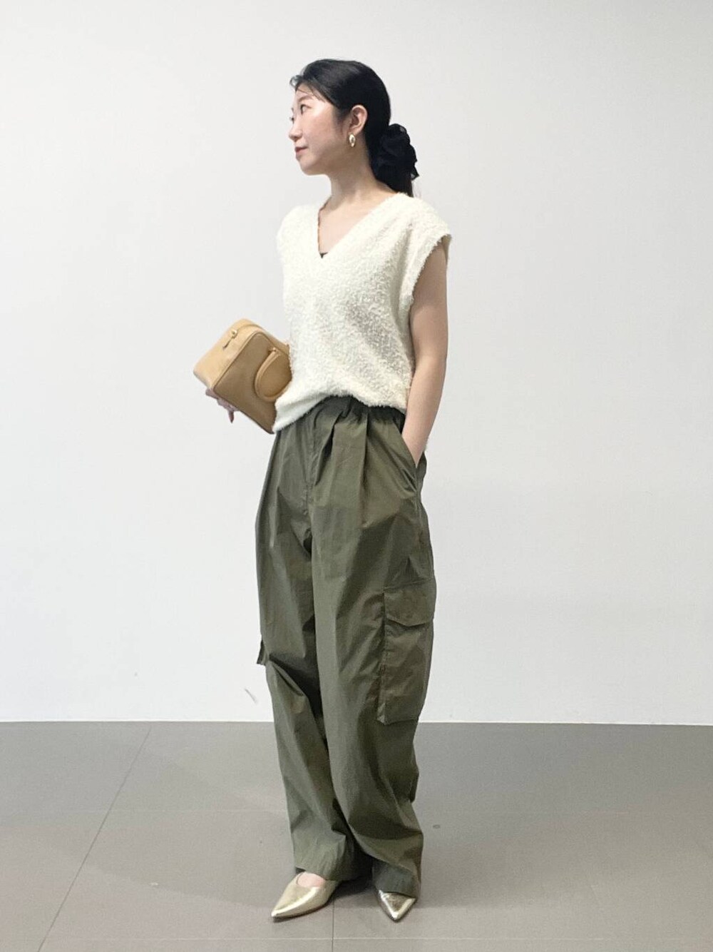 ⭐各アイテムのおすすめポイント  ̄ ̄ ̄ ̄ ̄ ̄ ̄ ̄ ̄ ̄ ̄ ̄ ̄ ̄ ̄ ̄ ̄ 【トップス】 表情のあるお素材なので 1枚で映えるトップスです✨✨ 夏のトップスバリエにオススメです! 秋口はベストとしてカットソーレイヤード しても可愛いですよ✨ 丈は、 162cmの私でおへそ隠れる丈です。 袖は、 フレンチスリーブなので 二の腕安心です! ノースリーブ普段着ない方も 夏は涼しく着れますよ✨ 【ボトムス】 コットンナイロン素材のNEW face✨ 丈は、 162cmの私でロールアップせず ジャストくらいです! 34サイズもお作りあります✨ ミリタリー感が強すぎない柔らかいカーキは 女性らしいレースやチュール素材と相性◎ 素材はサラッとしているので暑い夏から 秋までしっかり着回せますよ✨✨