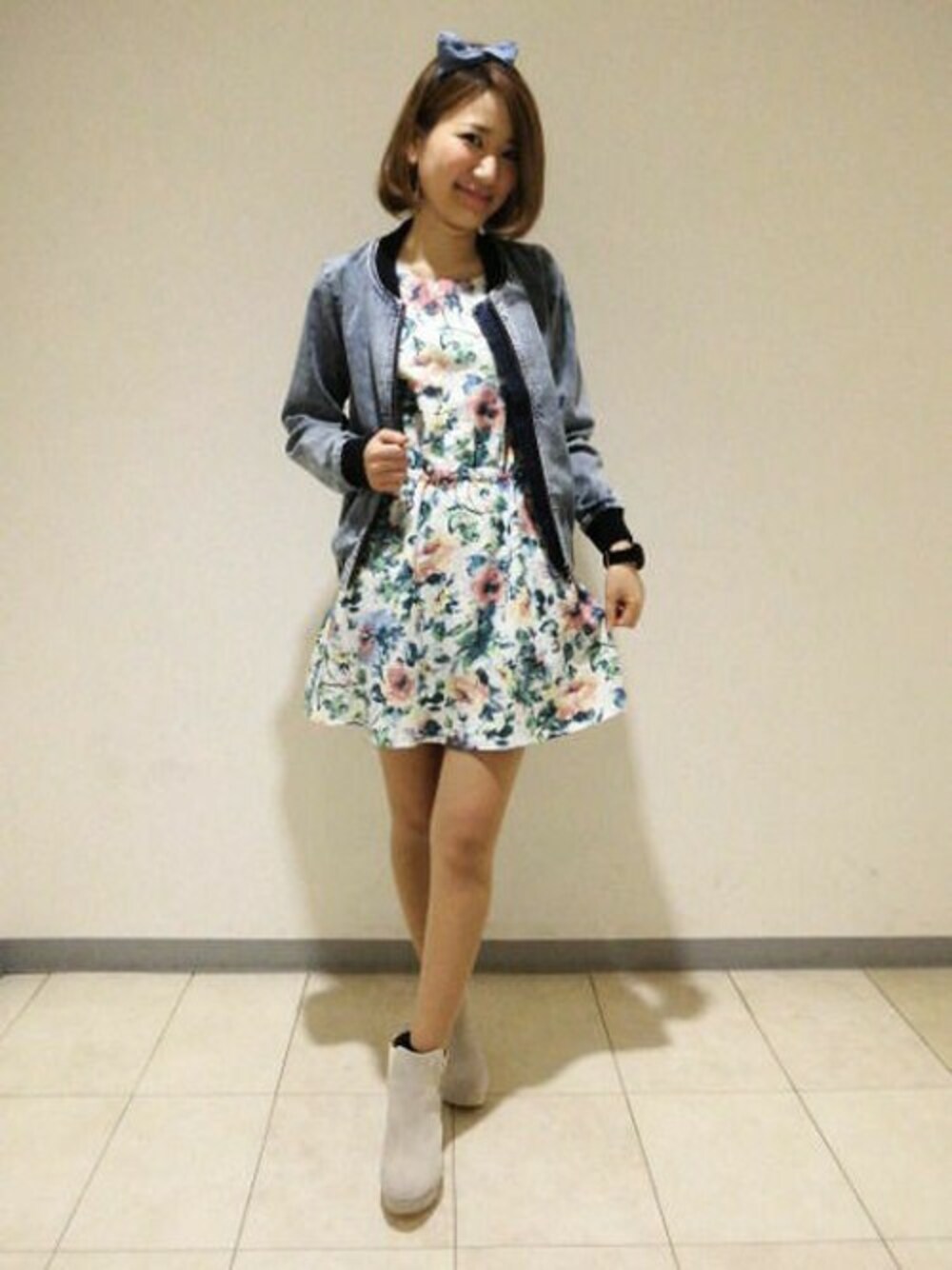 ワンピースはウエストがゴムになっているので着やすいです!!ワンピースに外してデニムのブルゾンを持ってくるのが今年のトレンドです★
