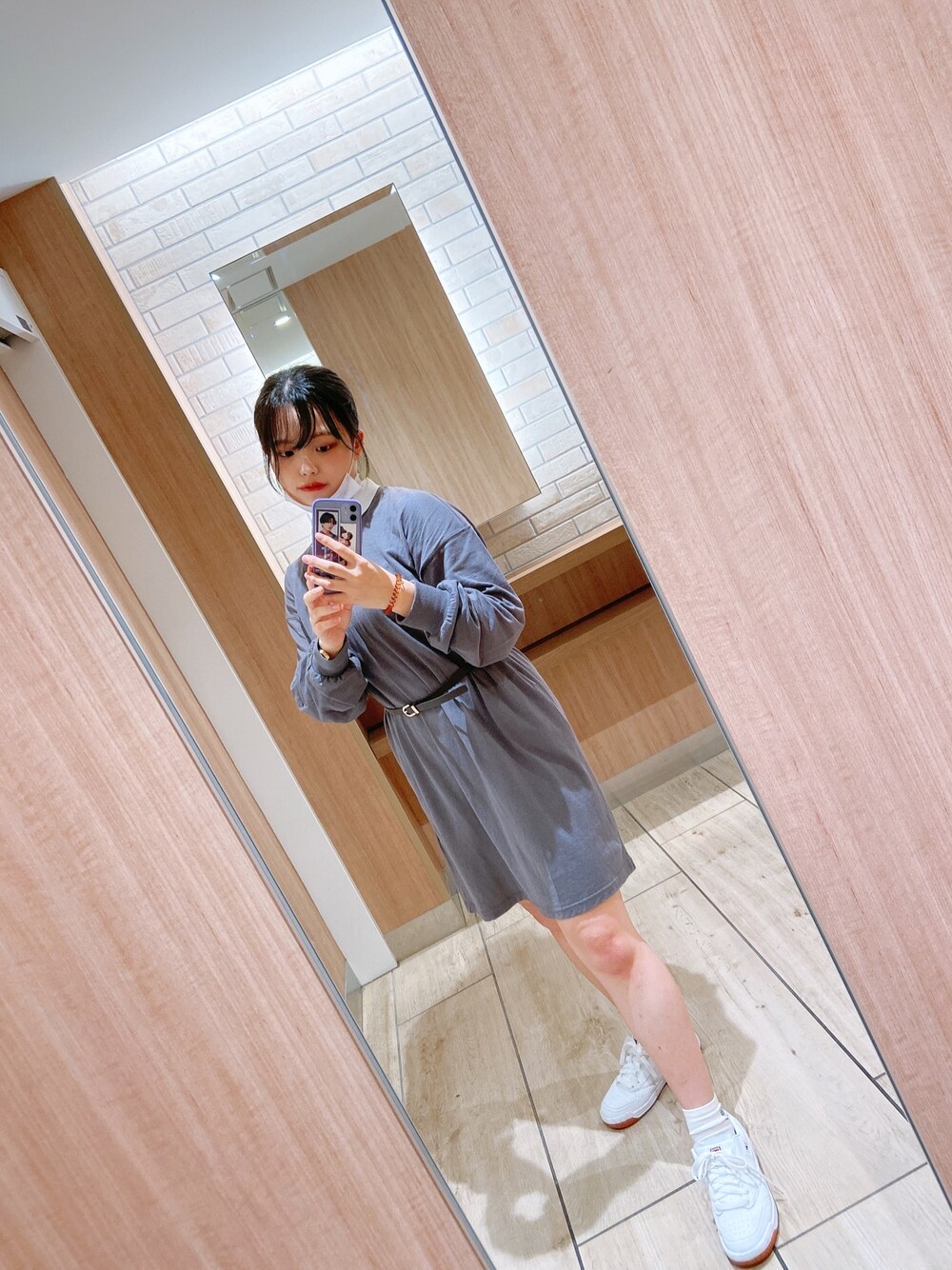 いつも歩く毎日の日常もかわいい服を着てるとウキウキするものですね♪♪ 学校に使うリュックにも合うのでなお素敵✨