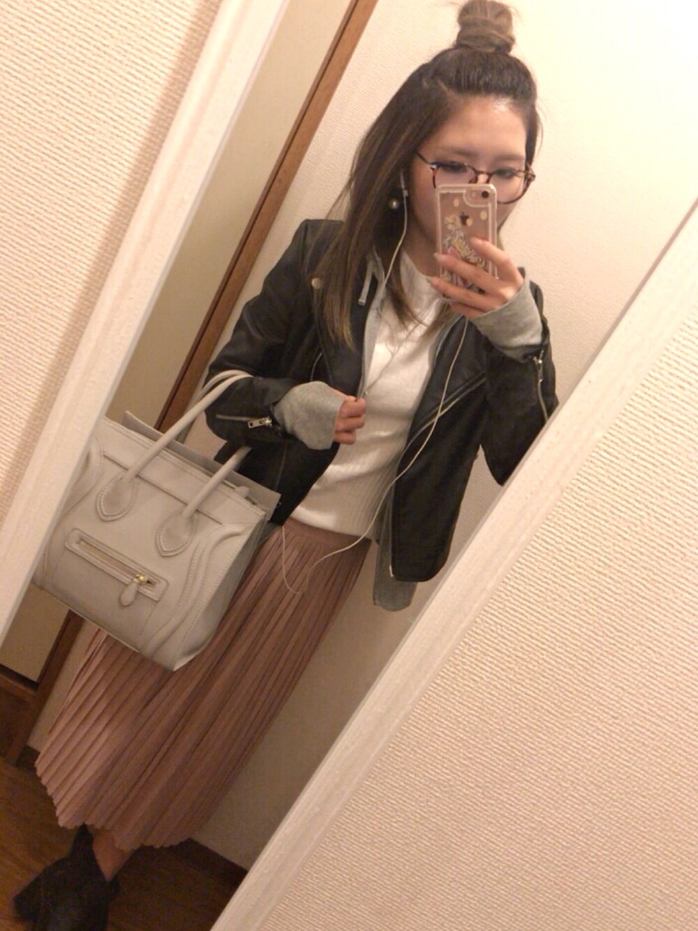 春コーデ♡ この前買ったGUのプリーツスカートお気に入り〜☆ 何かと最近ぷちぷらコーデ(°▽°) ライダースはベージュかピンクを買い足そうか 検討中🤔
