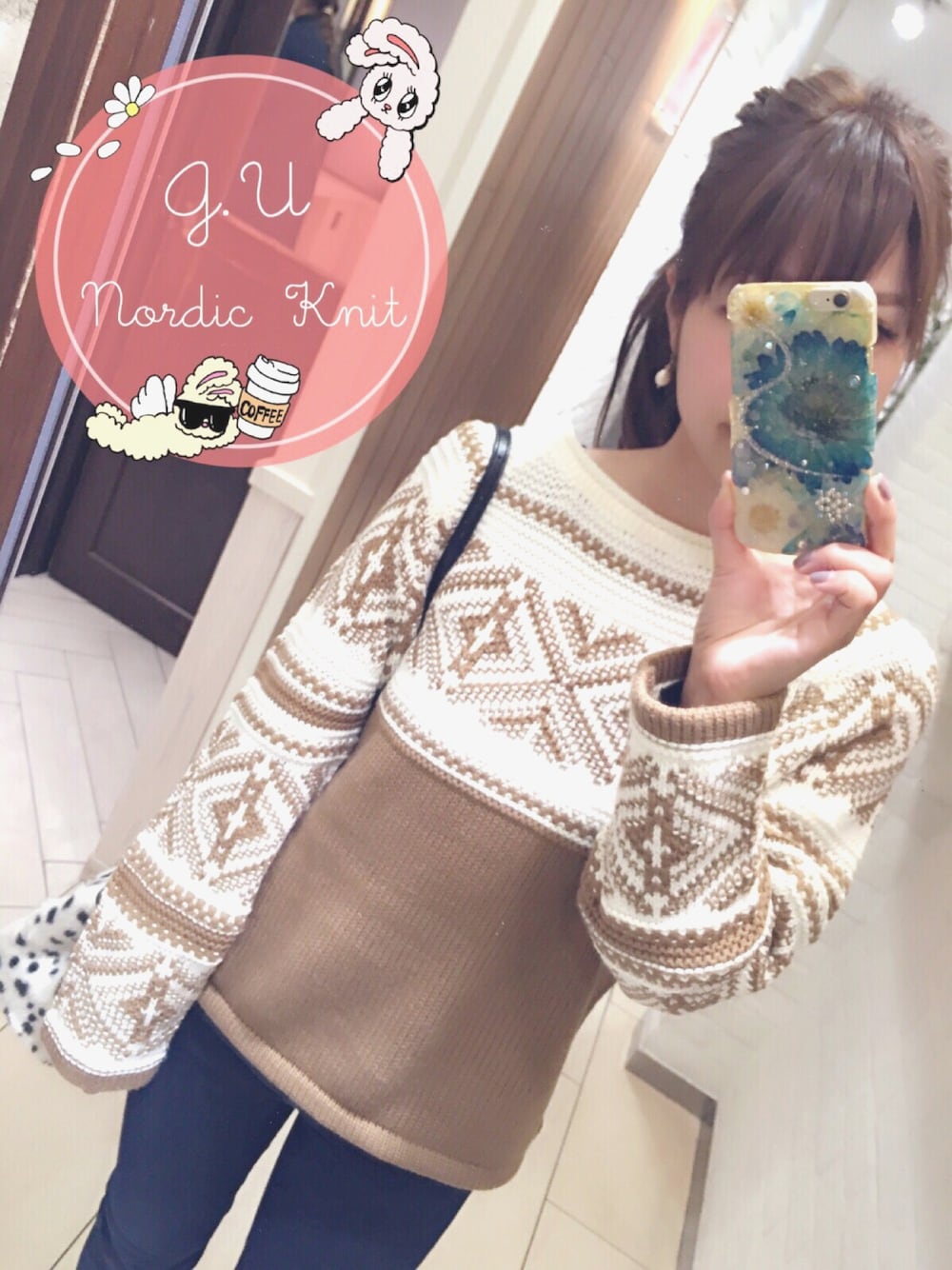 GUのノルディック柄ニット♡ こないだGUへ行ったら、可愛いノルディック柄ニットがたくさんあってビックリしました。 以前の私なら2つ、3つ買っていたところを(笑)厳選してこれだけお買い上げ。 大き目に着たかったので、Lサイズ。 袖が長めなところと、首のつまり具合がお気に入り。 白×茶色も可愛い(*´ω`*)♡