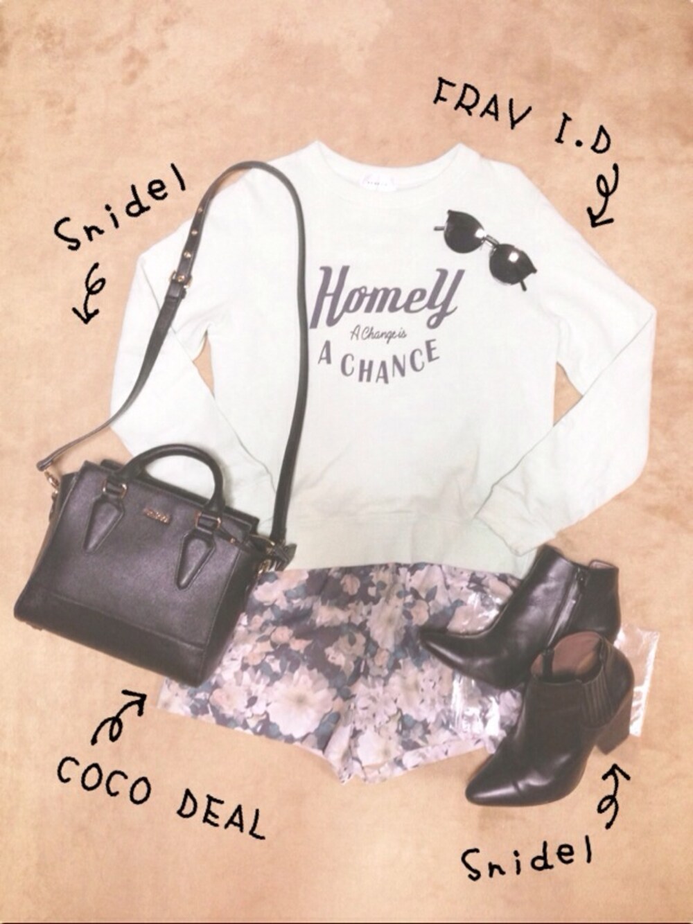 ミントグリーンのスウェットお気に入り♡ 最近食欲旺盛でヤバイ…。 痩せなきゃ夏に生脚出せないよ。゚(゚´Д`゚)゚。 スウェット*FRAY I.D ショーパン*COCO DEAL サングラス*Snidel バッグ*Snidel ブーツ*Snidel