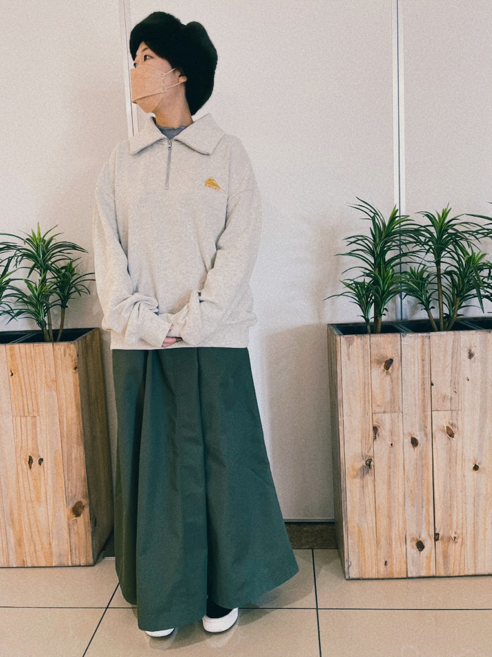 かなり寒くなったのでフライトキャップでコーデ スニーカーにスカートでカジュアルとレディースコーデでアピール✨✨ シンプルが大好きな方にオススメ💕 Instagram📷@polcadot_liberte_official